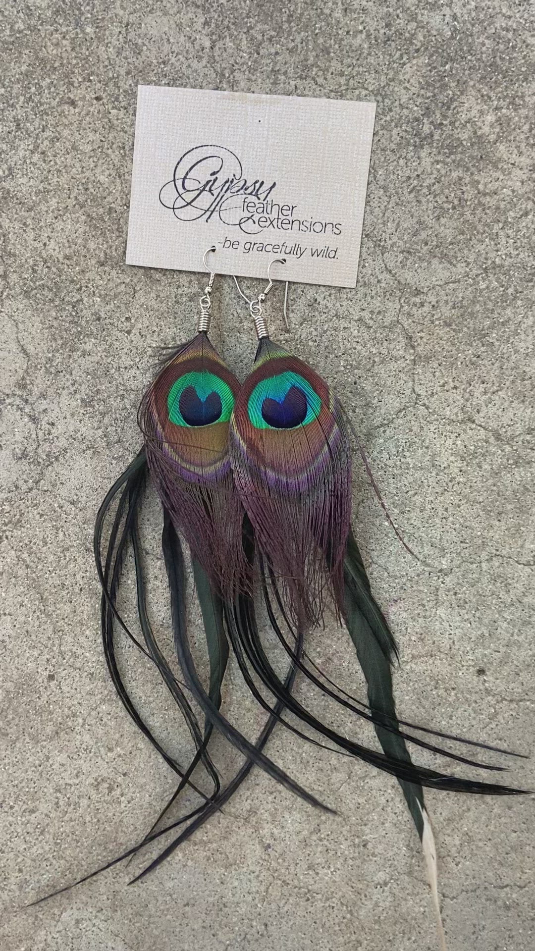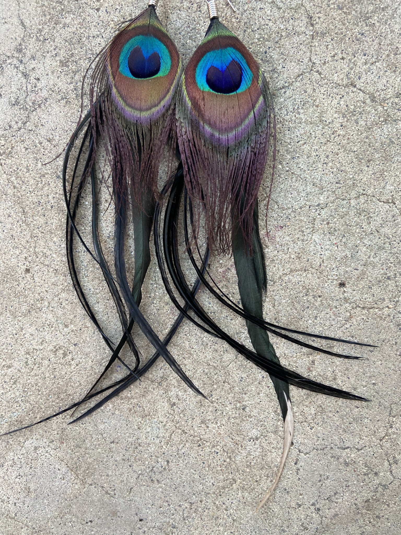 -Peacock feather with long edgy black feathers with hints of iridescent green